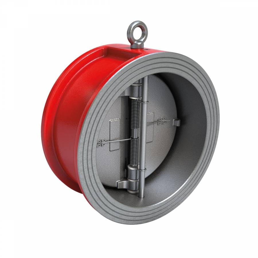 L’étanchéité du clapet de non retour double battant est assurée par une répartition de la force du ressort sur les battants garantissant un bon appui sur le joint du siège.